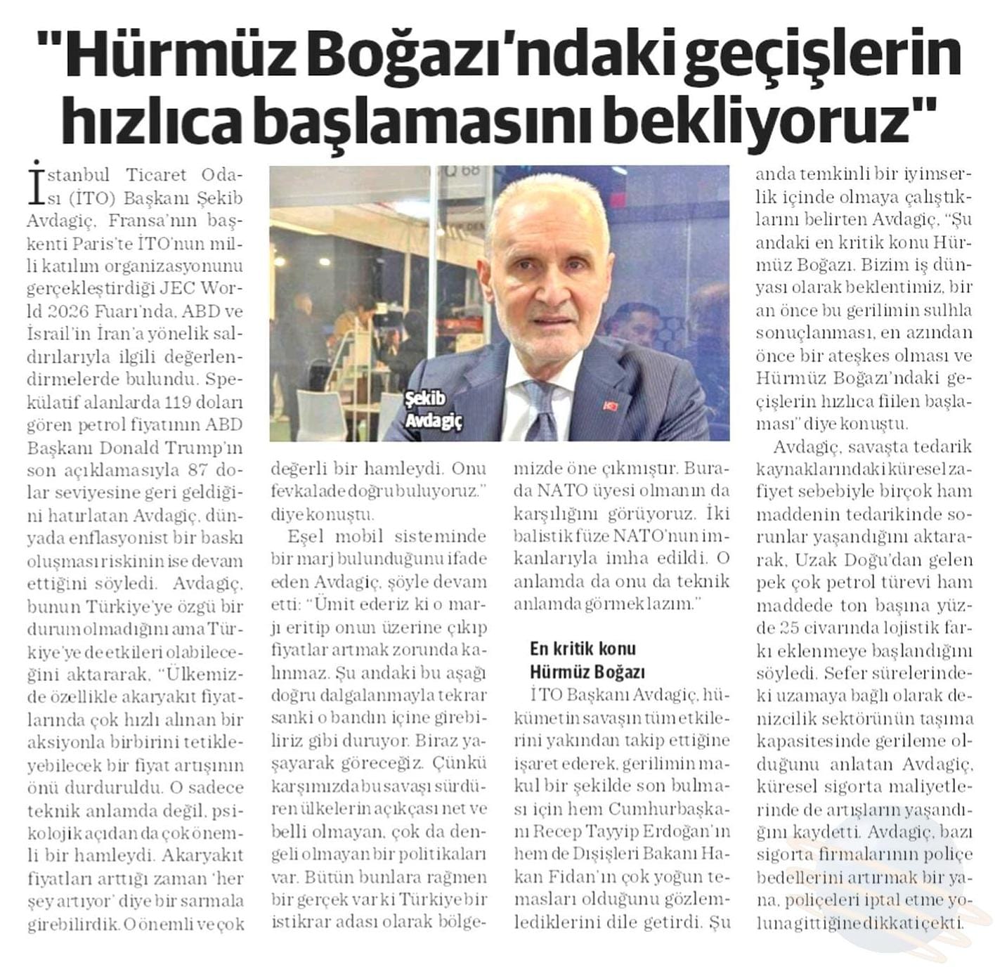 Hürmüz boğazındaki geçişlerin hızlıca başlamasını bekliyoruz