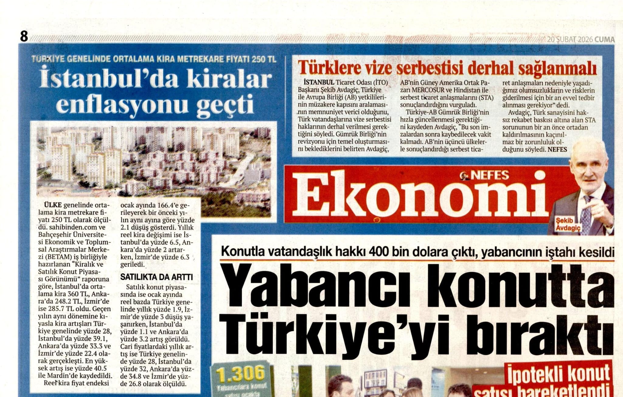 Türklere vize serbestiyeti derhal sağlanmalı